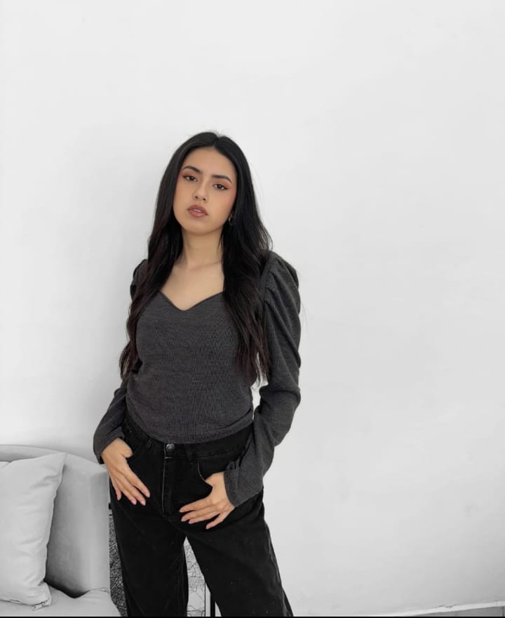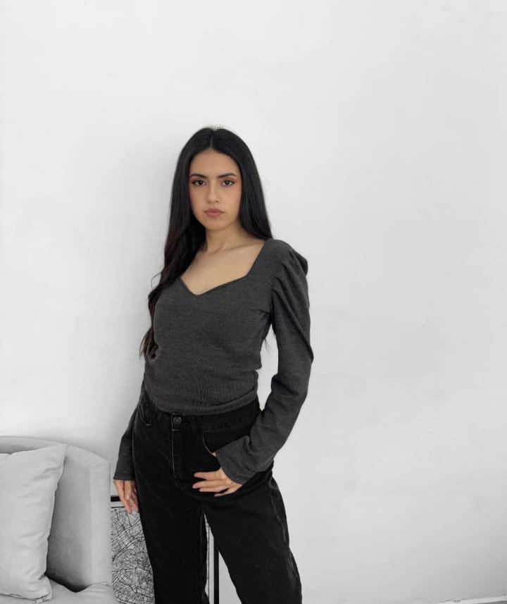 Una básica que no pasa desapercibida. Confeccionada en morley vintage, esta remera de talle único se adapta al cuerpo con suavidad y estilo. Su cuello en V estiliza y alarga el cuello, mientras que las mangas princesa le aportan un aire romántico y femenino que levanta cualquier outfit.