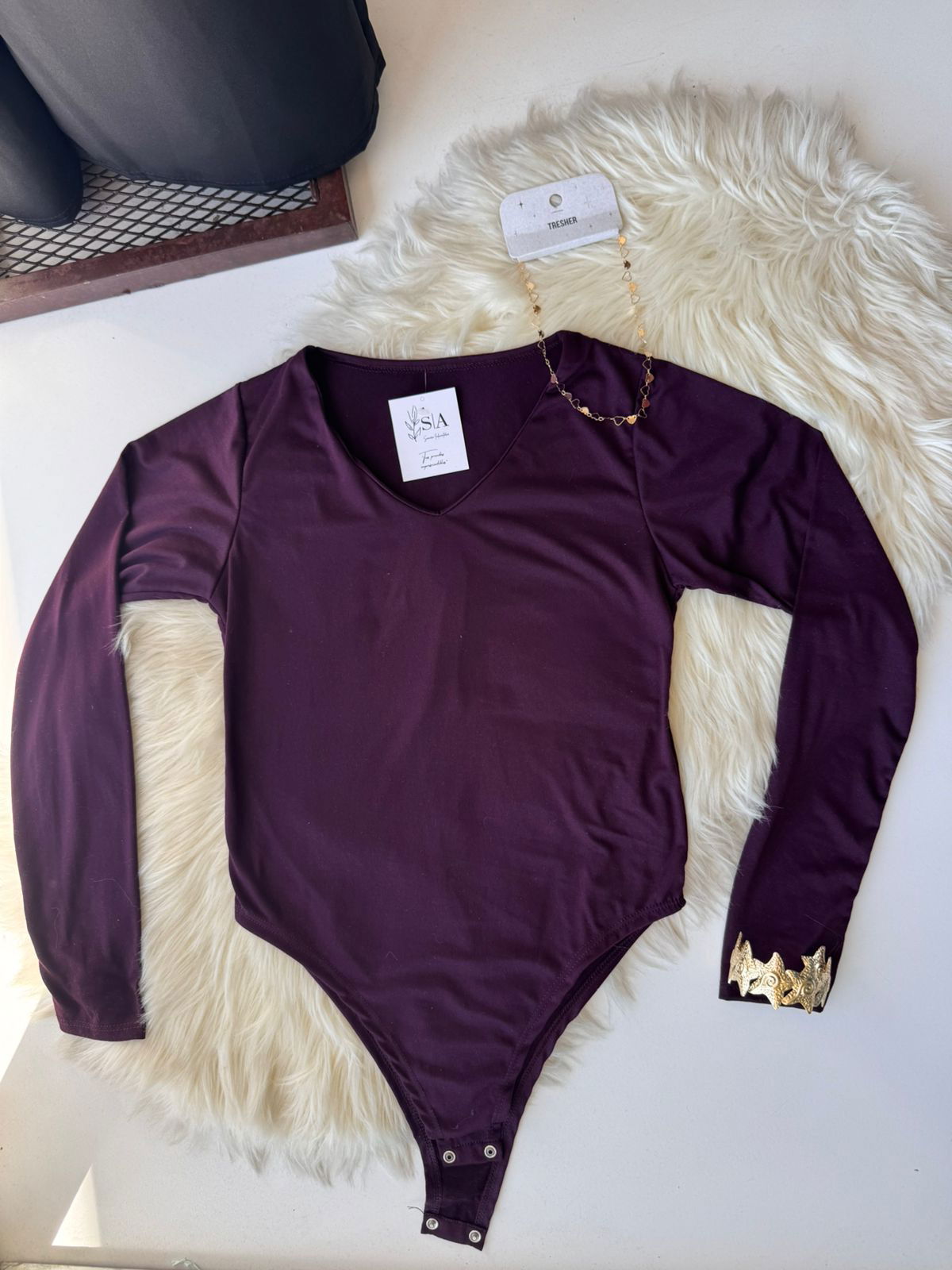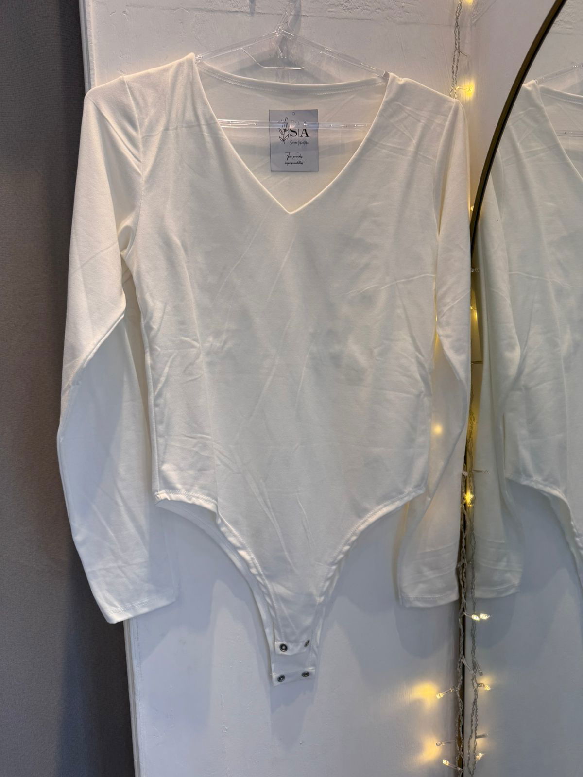 Body manga larga, material modal soft, se abrocha abajo (botones a presión)