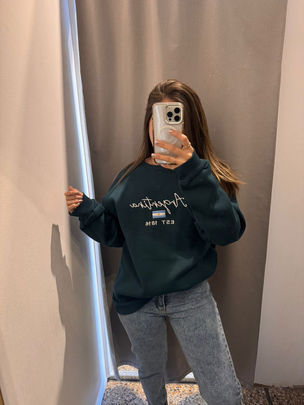 Nuestro buzo oversize Argentina es ese abrigo que te ponés y automáticamente te sentís cómoda pero con toda la onda.