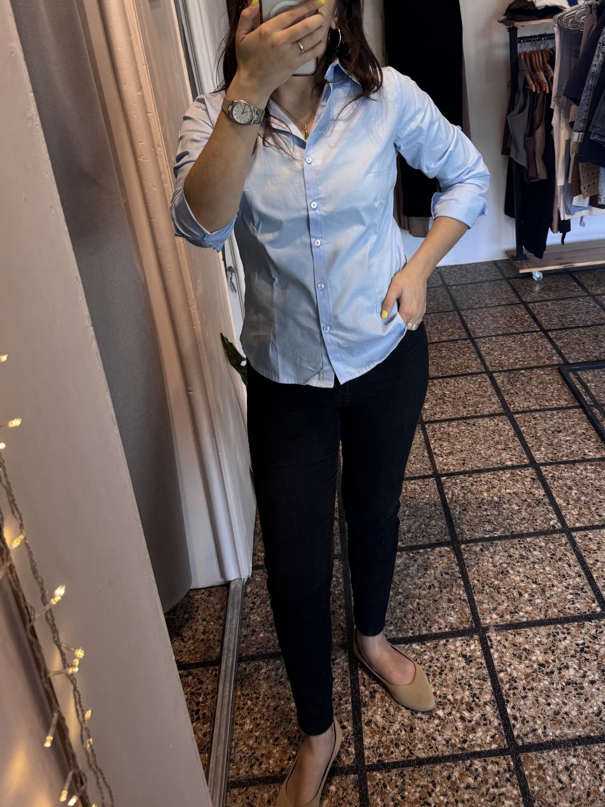 Nuestra camisa manga larga lisa entallada es esa prenda clave que estiliza al instante. Con un calce que marca la silueta sin ajustar de más, es perfecta para lograr un outfit prolijo, femenino y súper versátil.