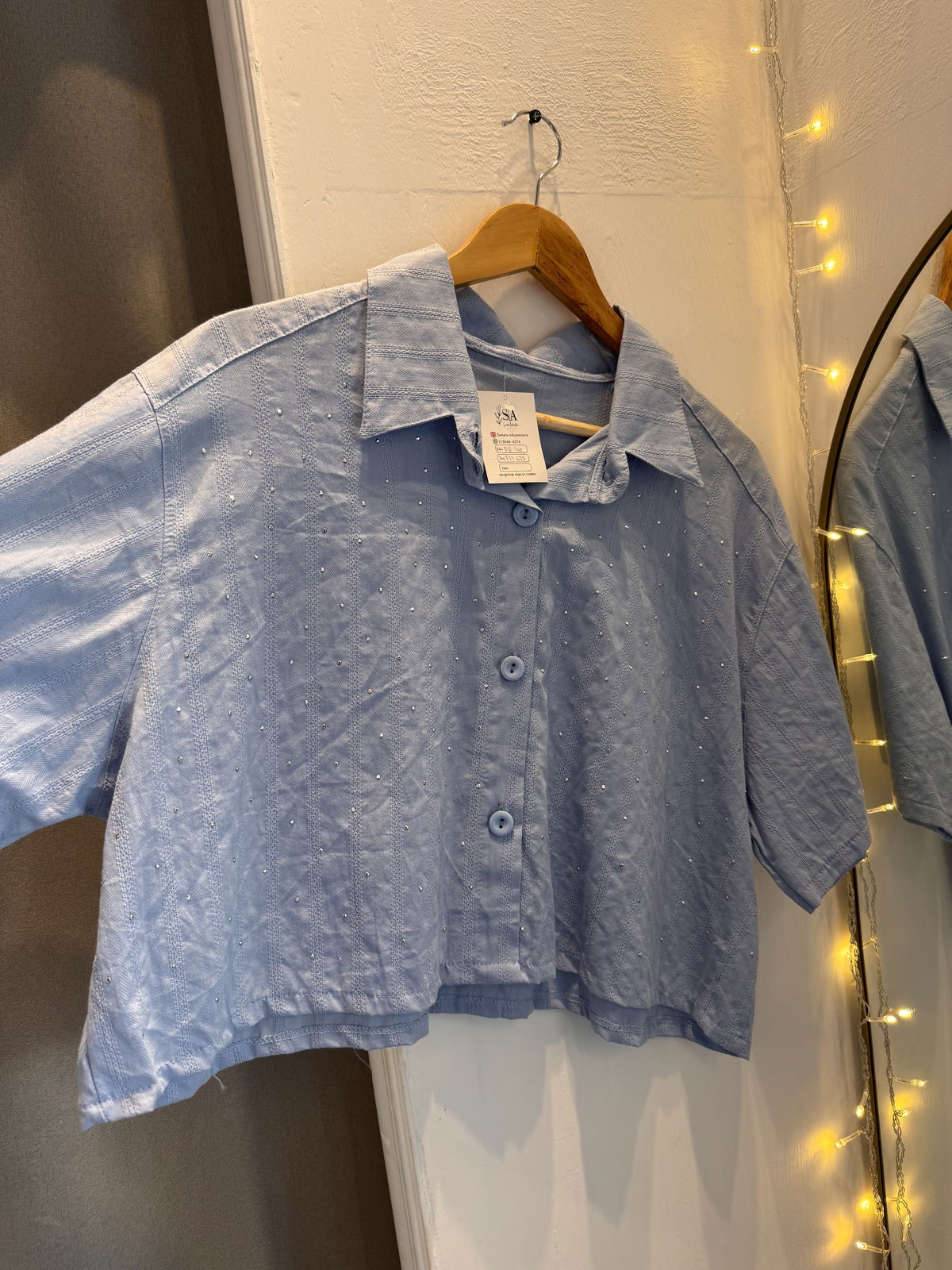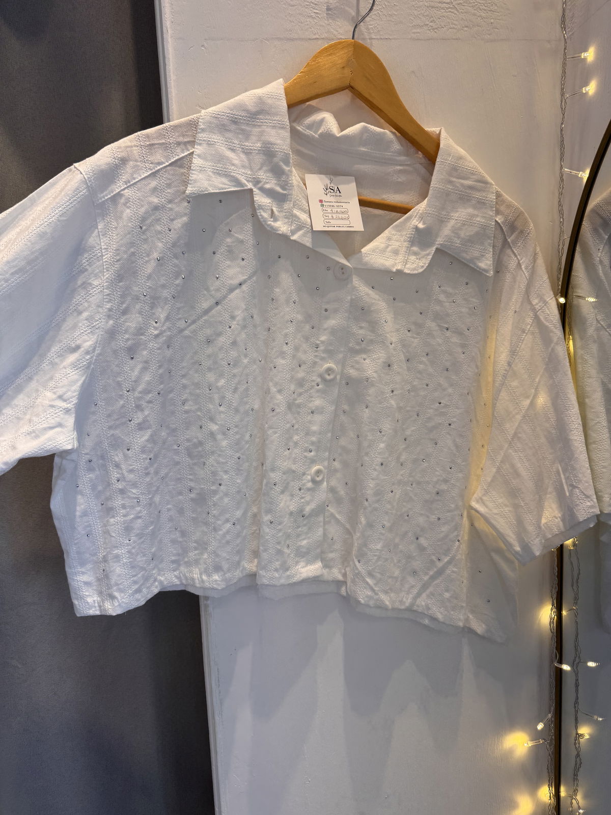 Camisa manga corta con strass corte boxy (a la cintura pero ancha)
