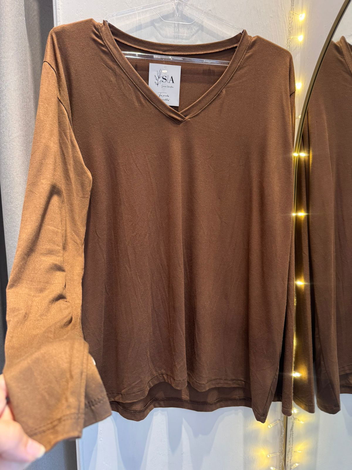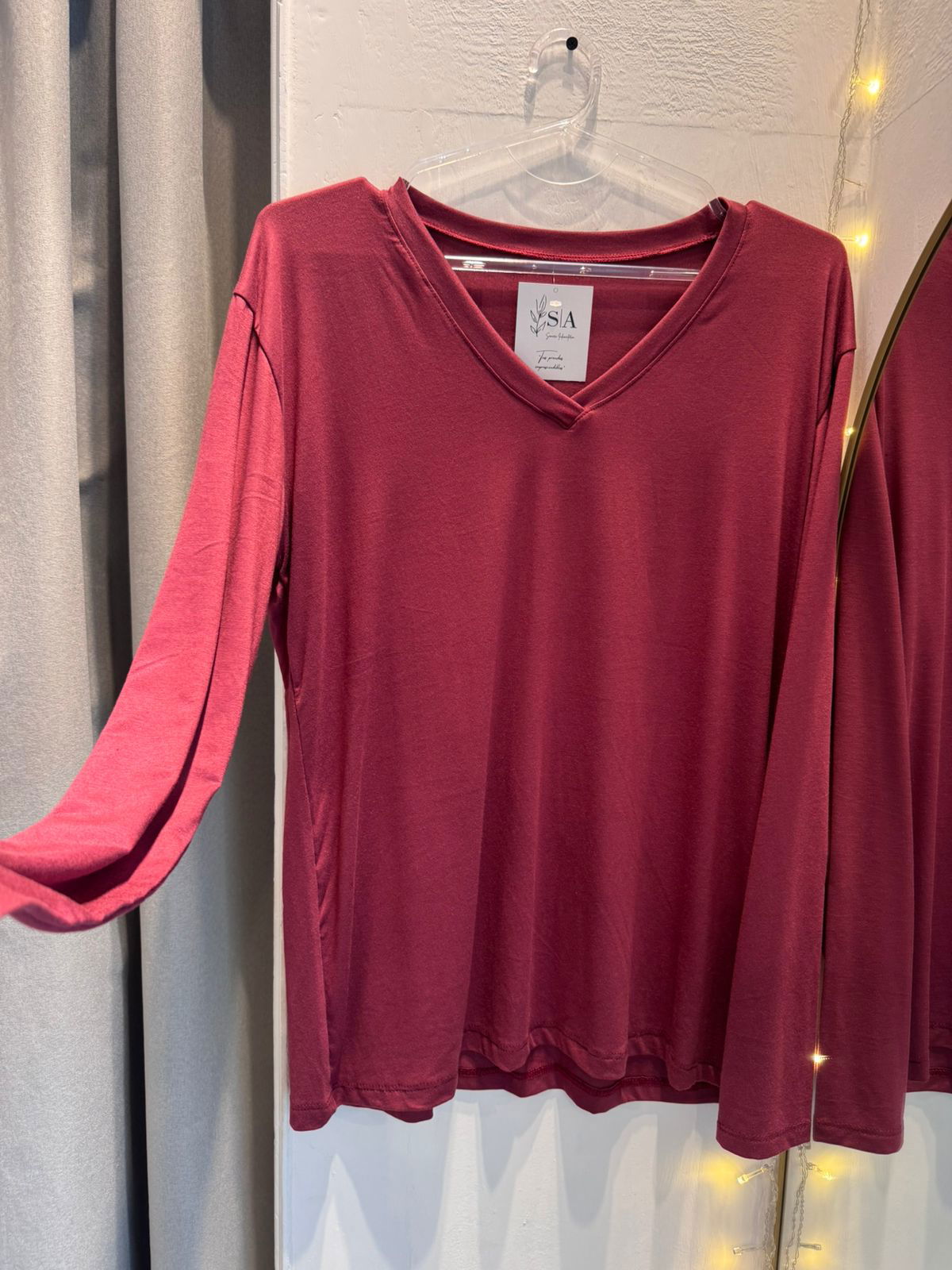Camiseta cuello V, un esencial que enamora desde el primer uso, con una tela súper suave al tacto, liviana y con una caída increíble que se adapta al cuerpo sin marcar. Es de esas prendas que sentís cómodas todo el día.