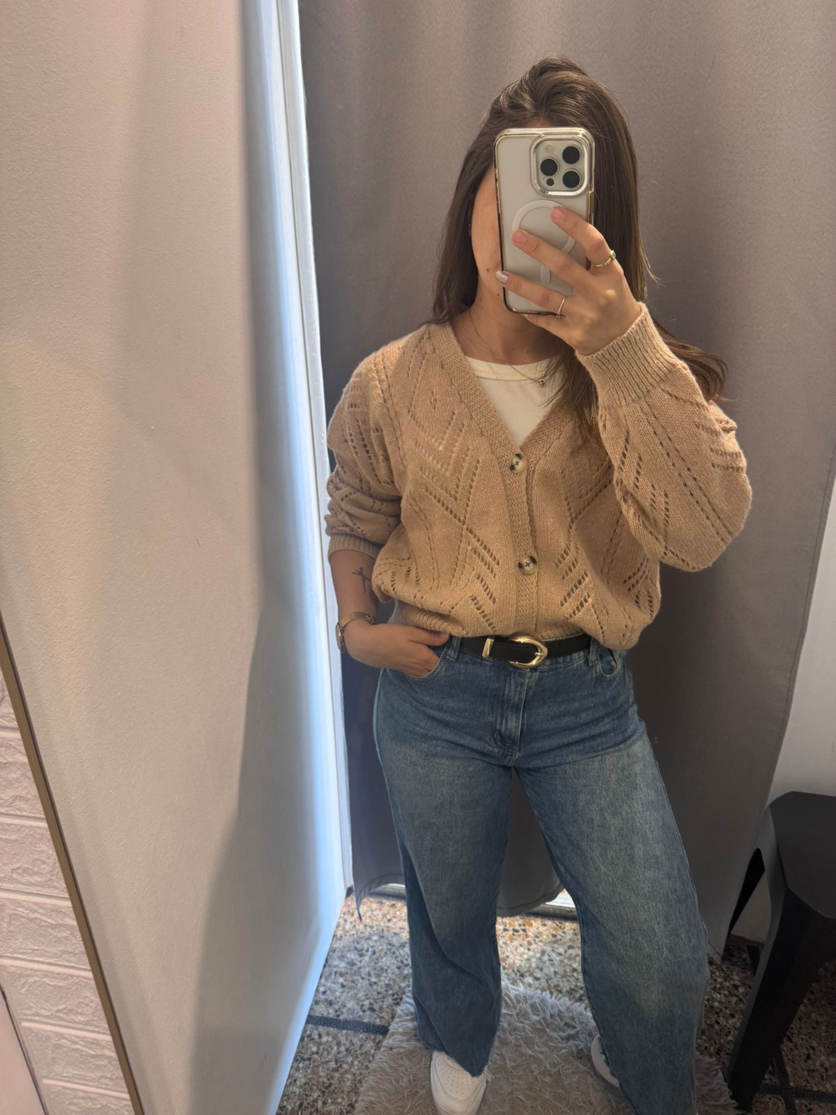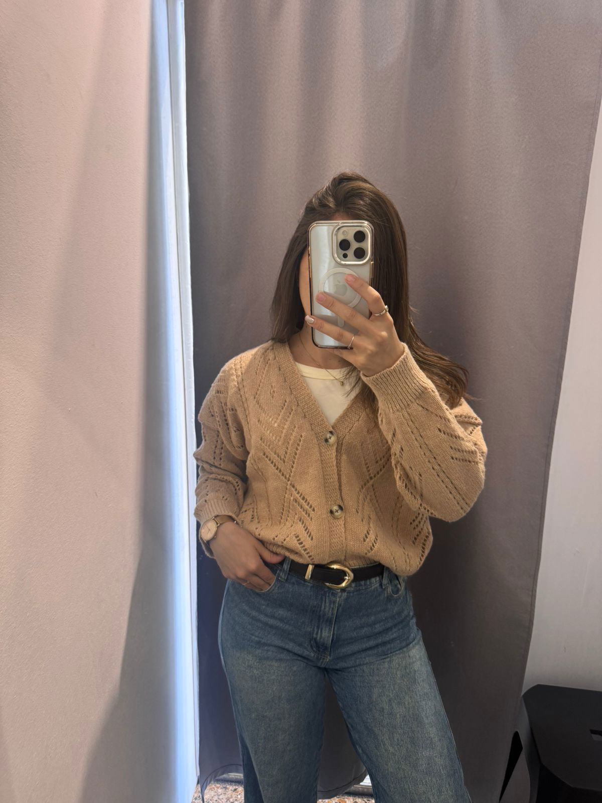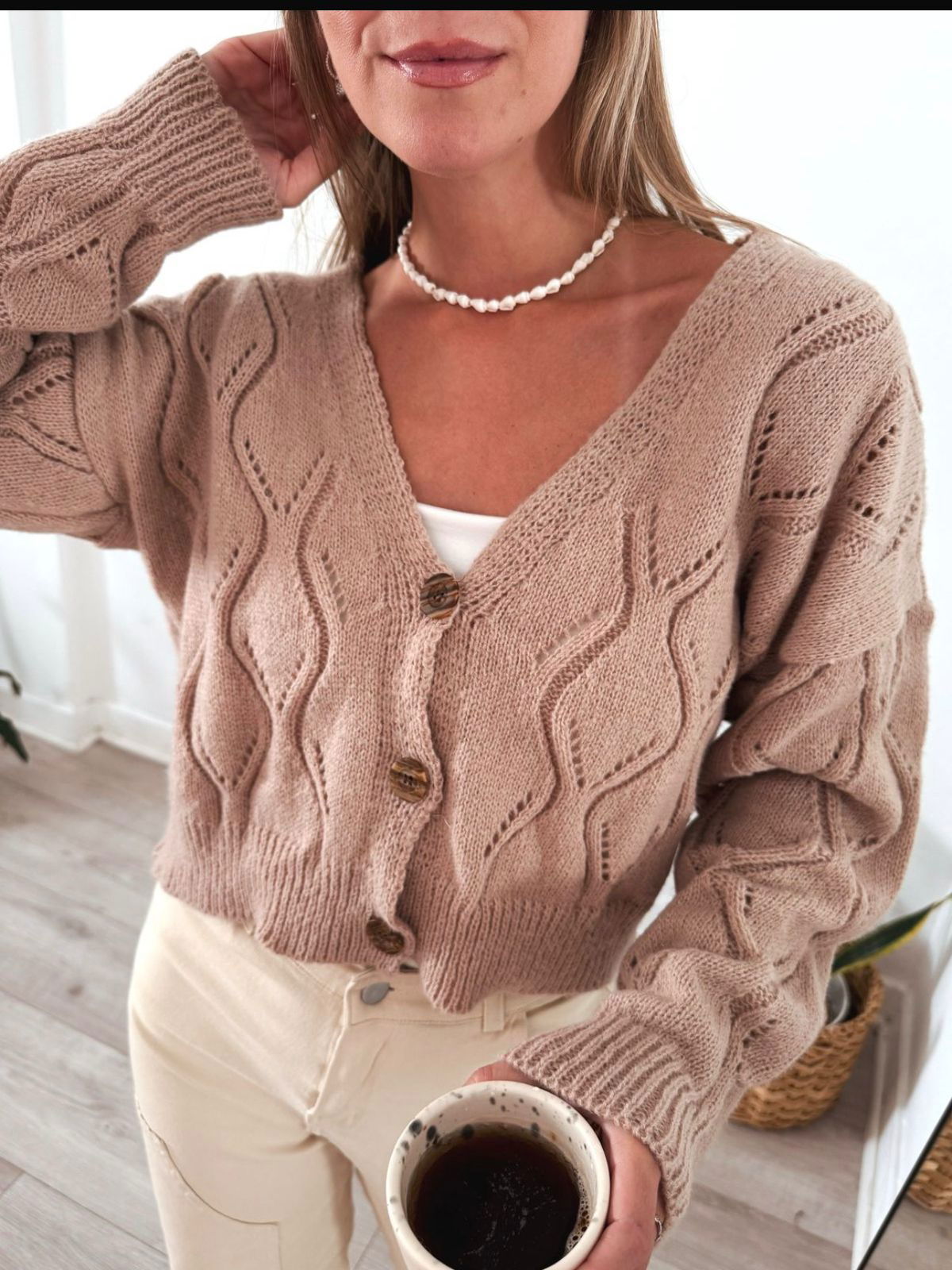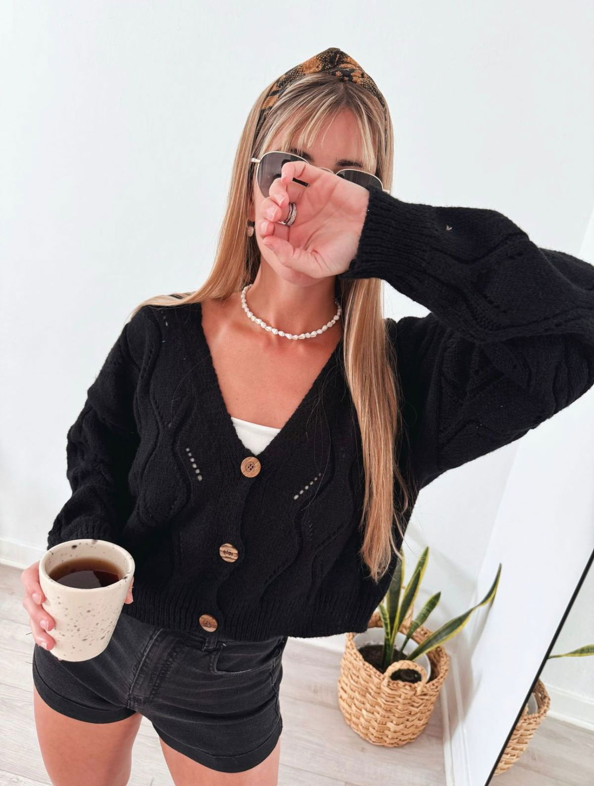 Cardigan material lana frizz con manga globo, estilo y versatilidad para esos días fríos
