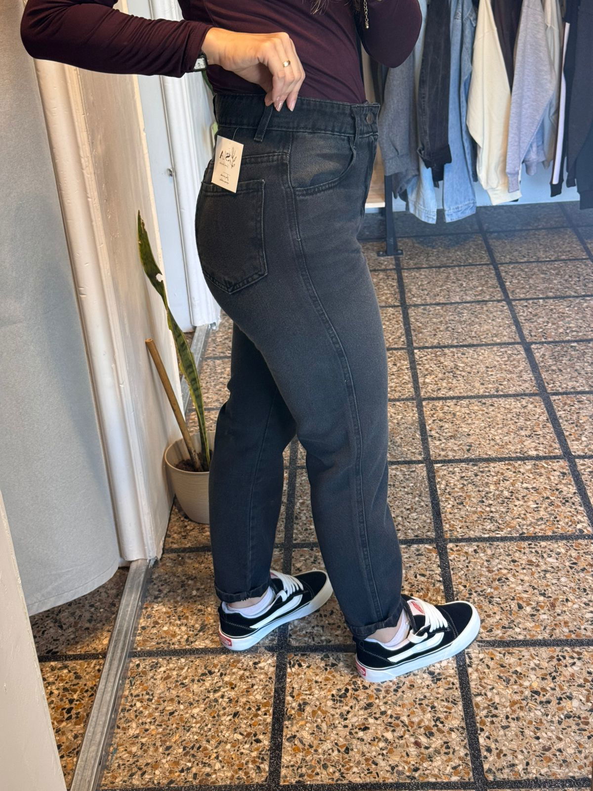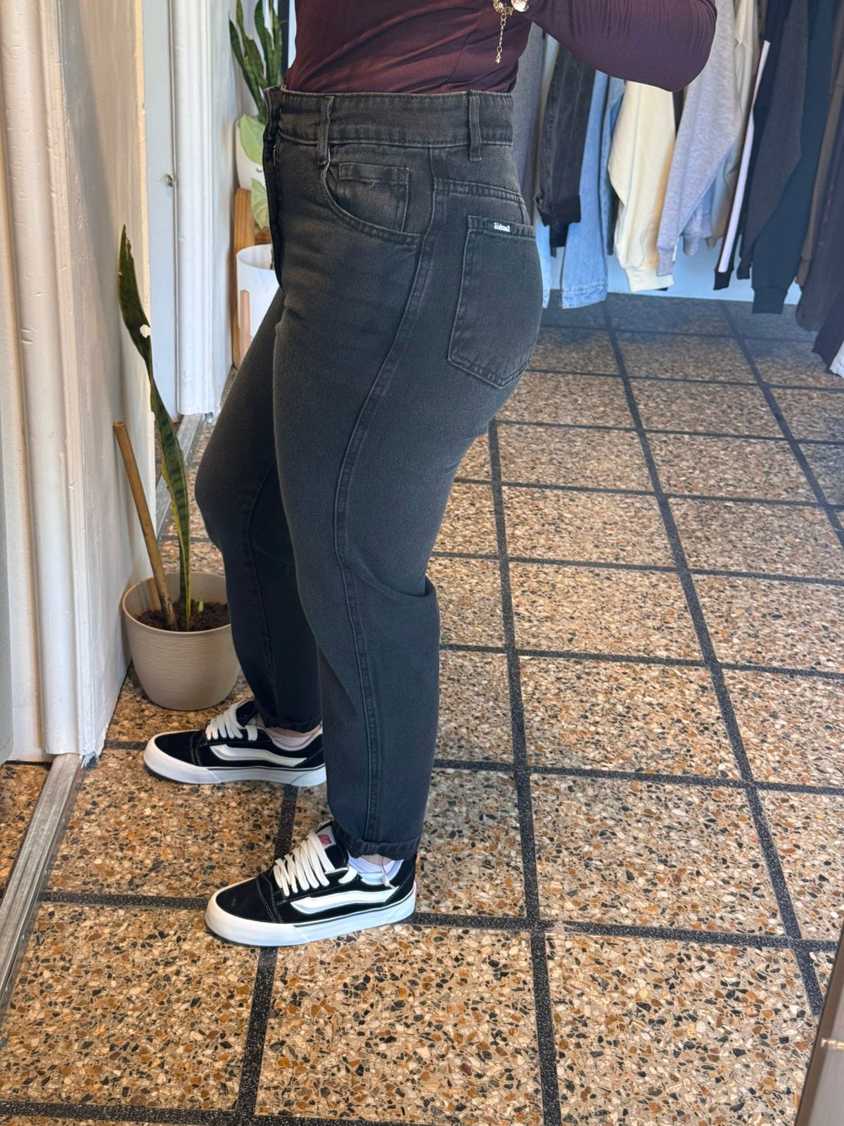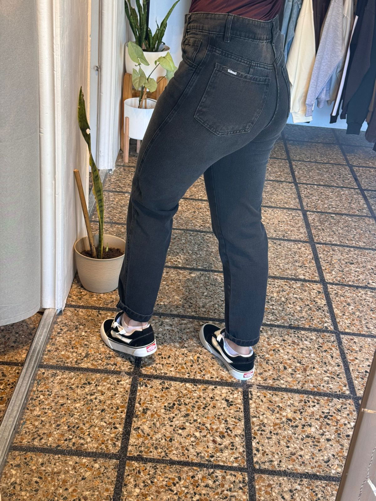 Jean Mom rígido, excelente calce, tiro alto con bolsillos y pasacinto, un infaltable para armarteun outfit casual