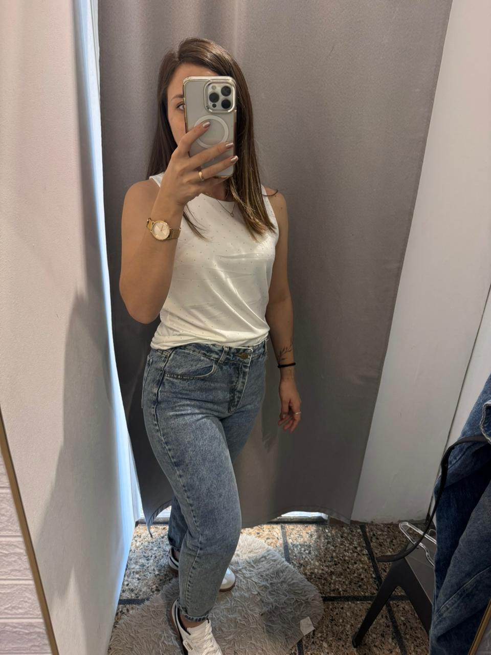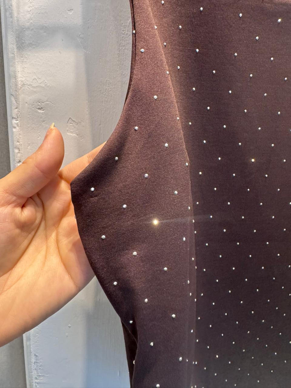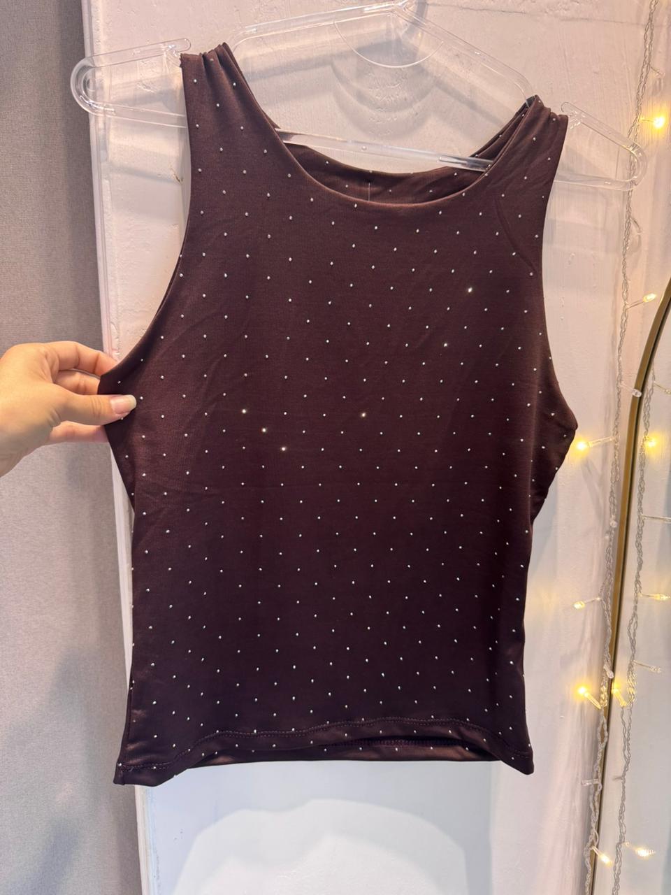 Musculosa de Lycra con doble tela en busto y strass por toda la prenda