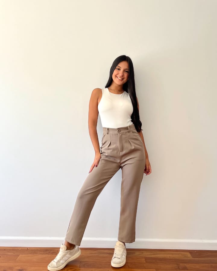 Este sastrero de corte recto es la prenda clave para elevar cualquier look sin perder frescura. Confeccionado en material crep estilo de vestir, rígido, bien tiro alto; cuenta con botón a tono, bolsillos funcionales y pasacinto para que puedas marcar la cintura o llevarlo suelto, según tu onda. Ideal para usarlo con camisas o una remera básica y zapatillas para un look más casual.