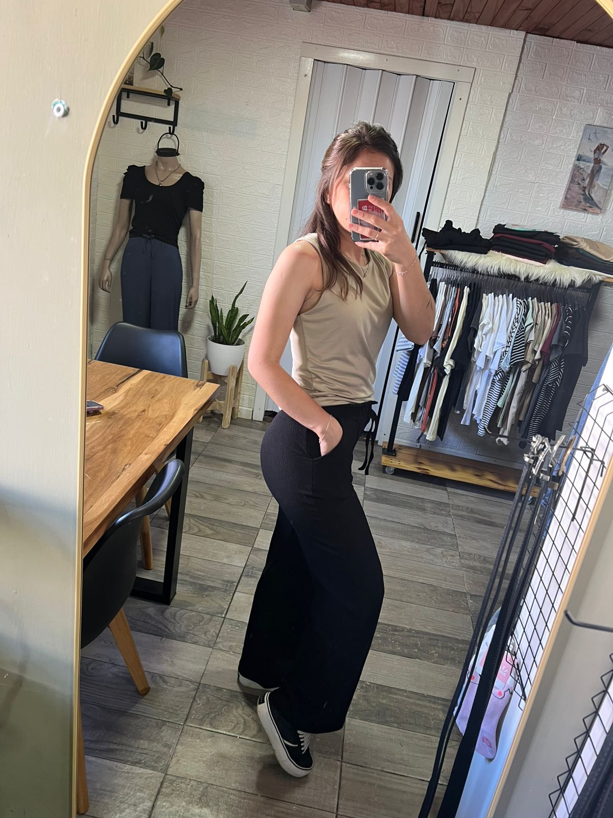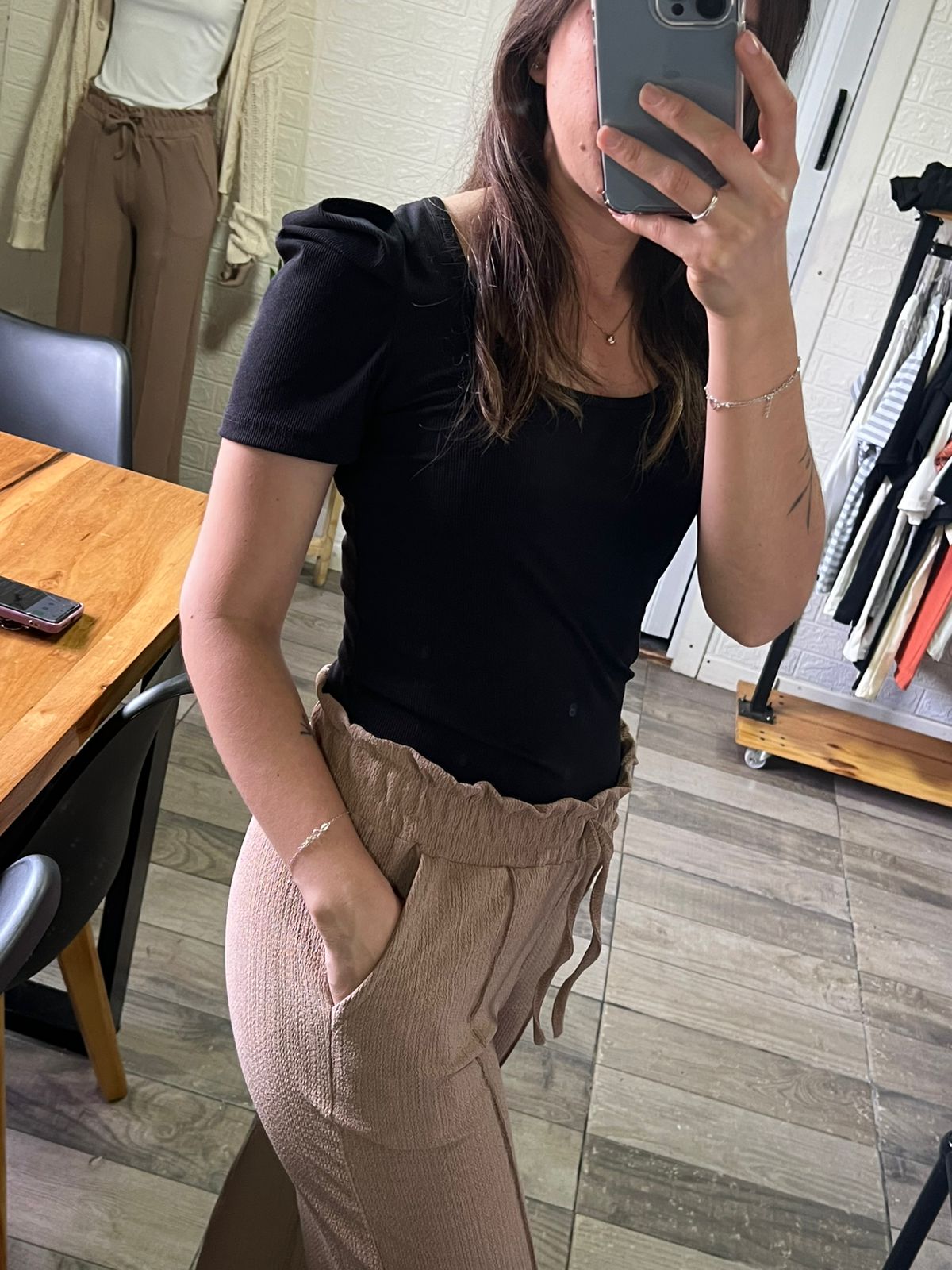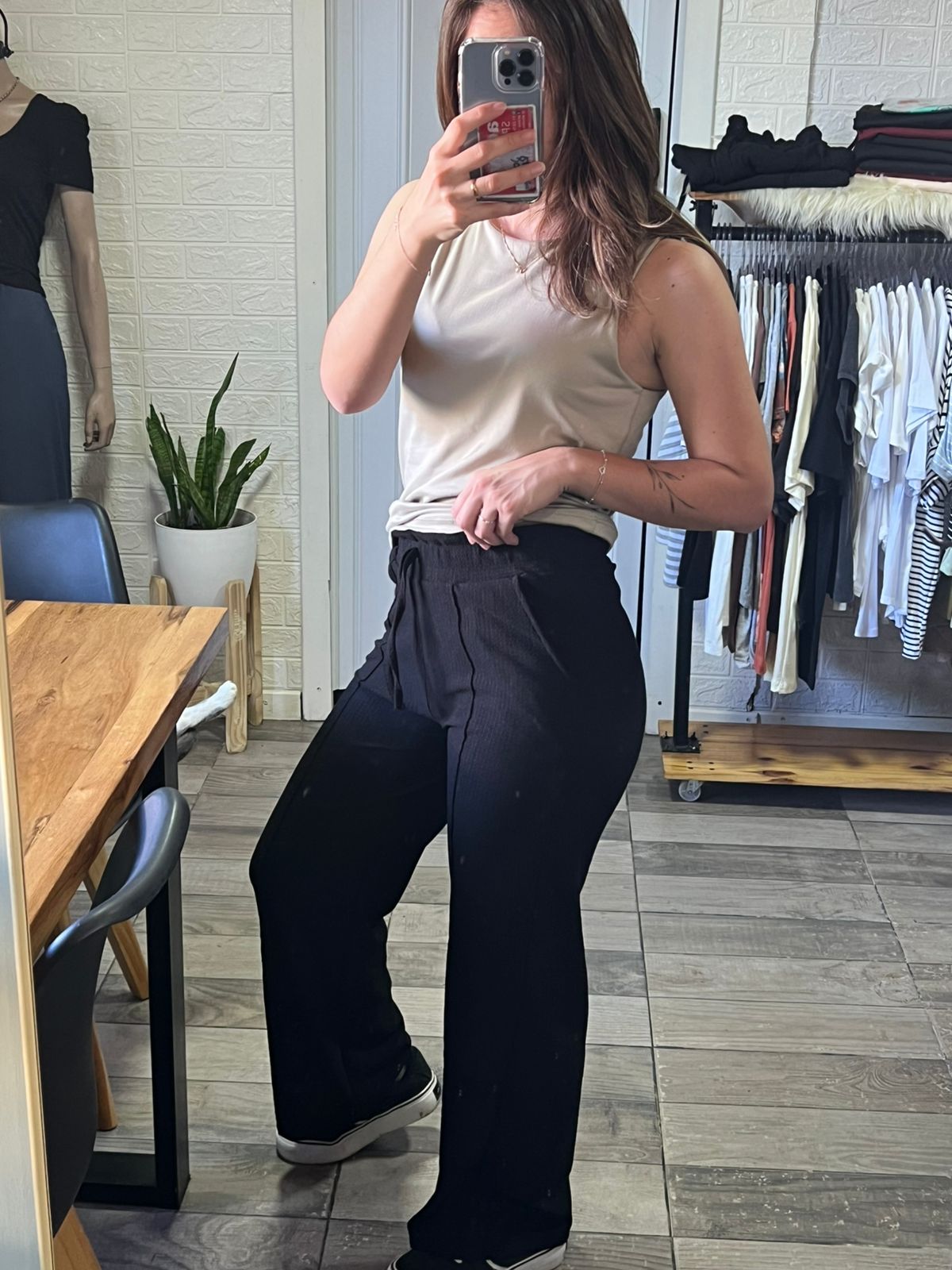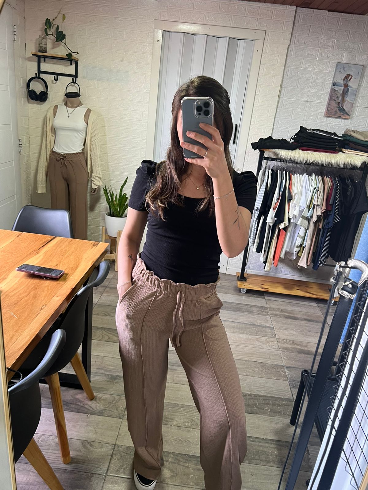 Con cintura elastizada y lazo decorativo, se adapta perfecto a tu cuerpo. Su caída amplia y fluida lo convierte en la prenda ideal para un look casual pero canchero.
