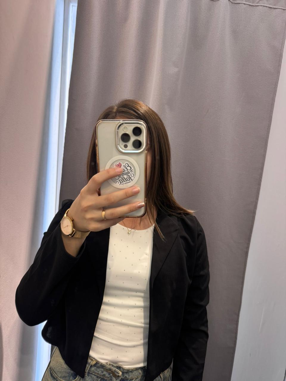 ✨ Blazer corto de crep: Una prenda canchera y versátil que eleva cualquier look. Con calce hermoso, es ideal para usar tanto de día como de noche. Perfecto para combinar con jeans, sastreros o vestidos y darle ese toque chic a tu outfit.