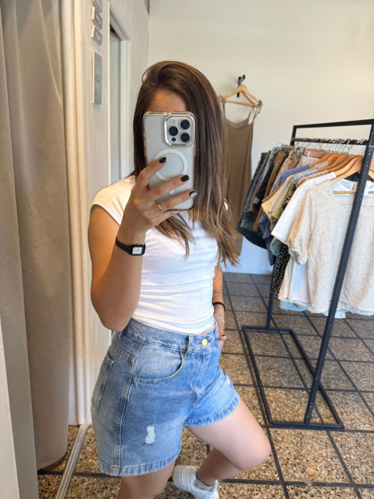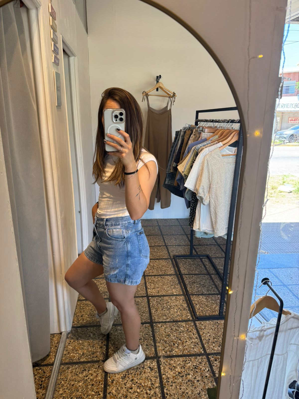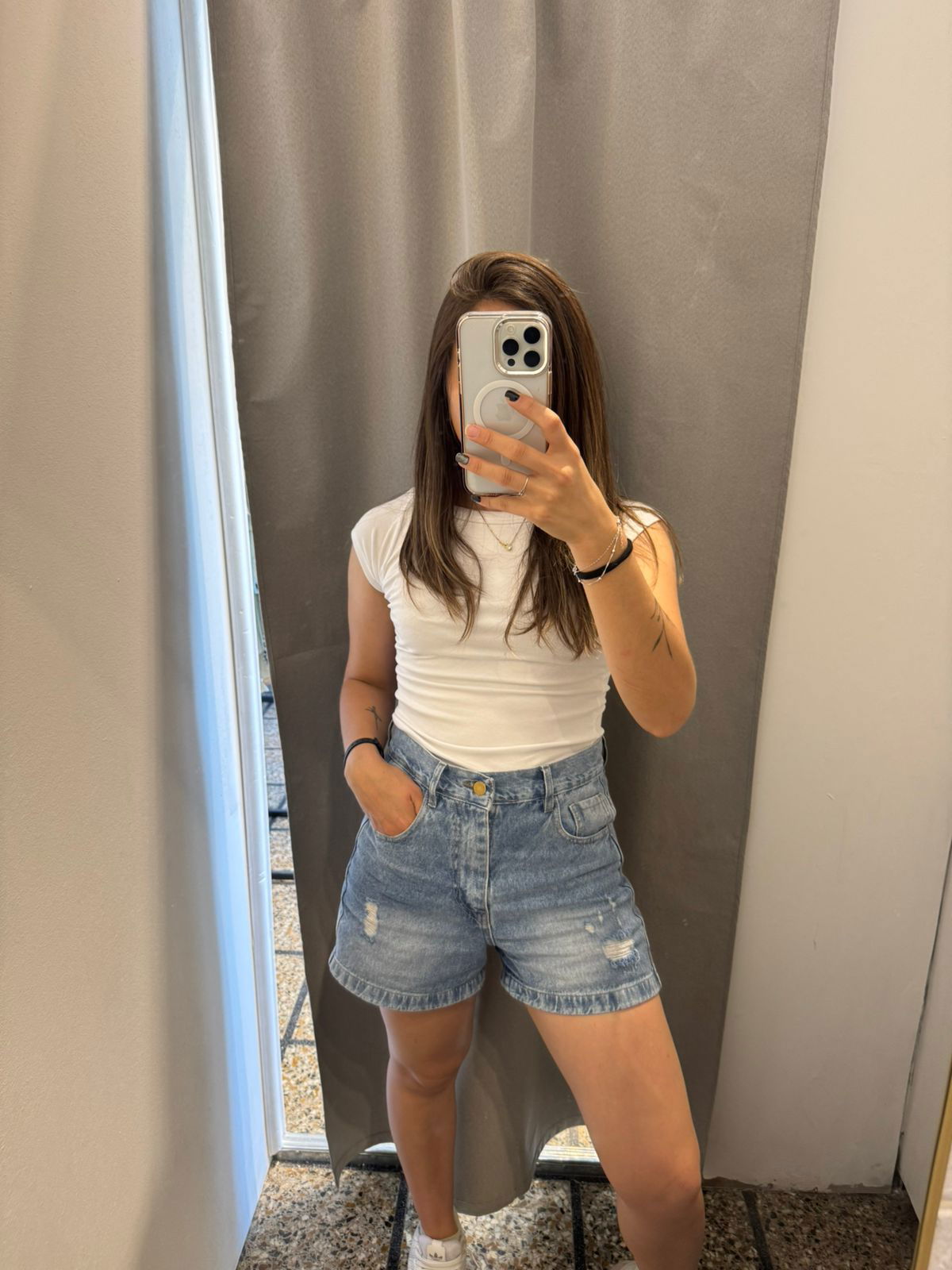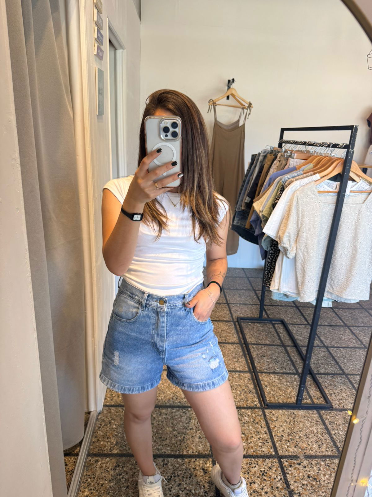 MODELO: Jean rigido con rotura, tiro alto con pasacinto y bolsillos. Hermoso calce