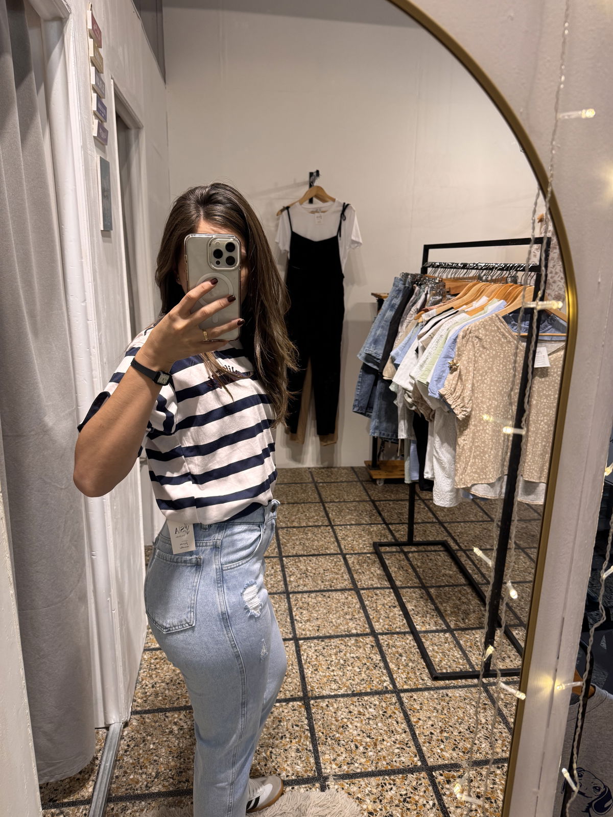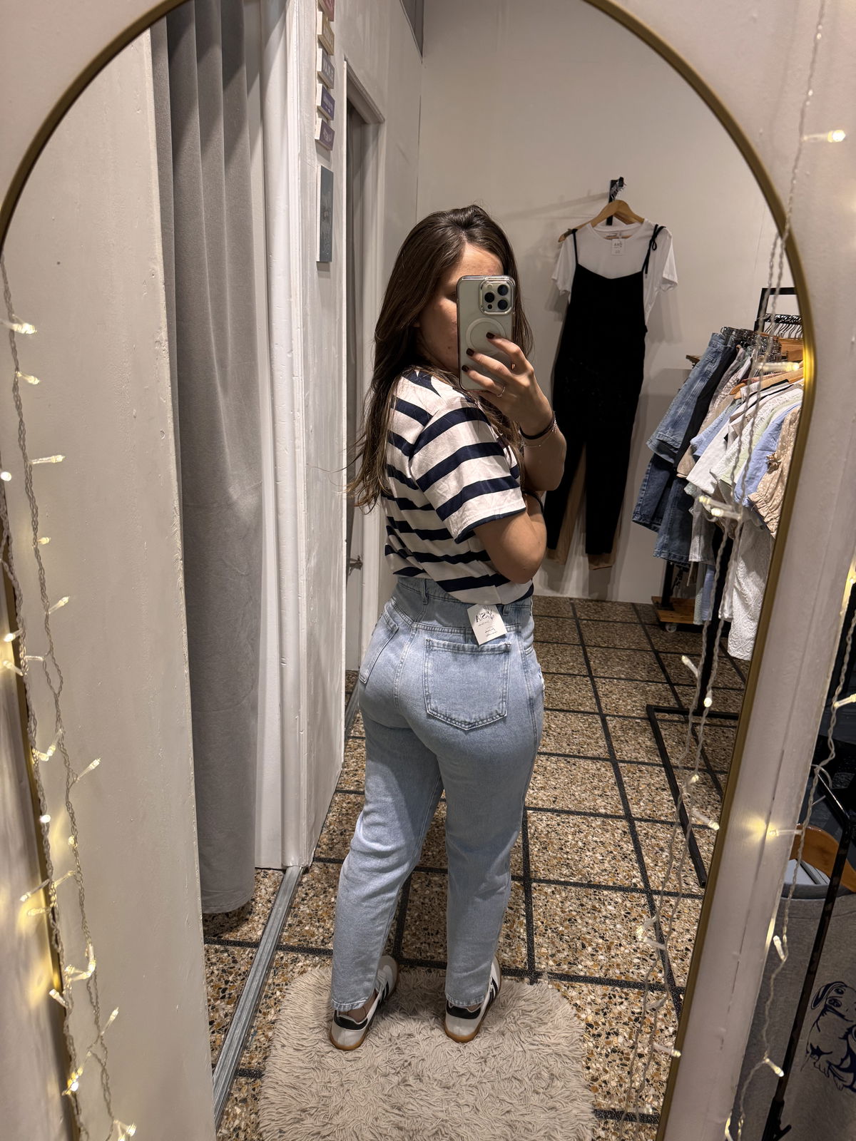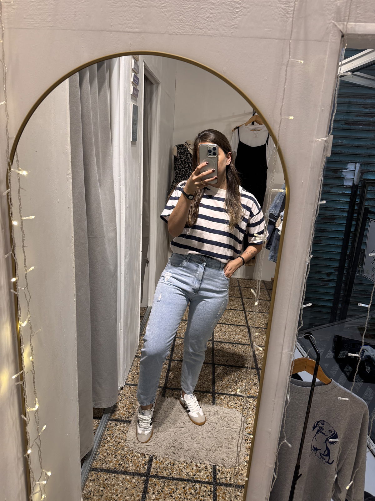 Modelo Mom rígido con pequeñas roturas que le dan un toque súper canchero a cualquier oufits