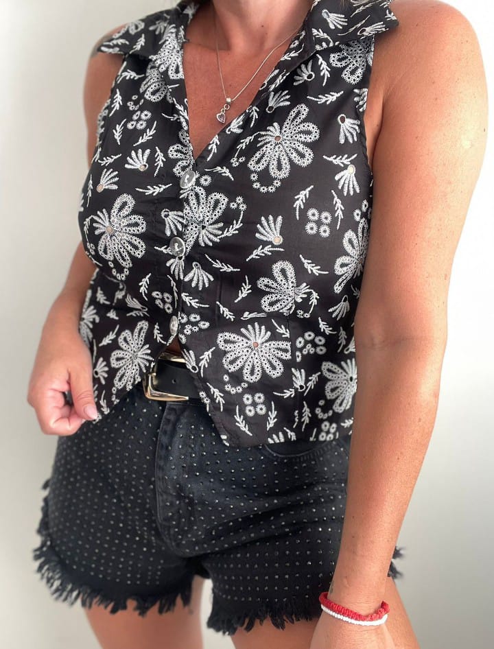 Talle unico abarca hasta un L/XL aprox Material brotherie, un modelo ideal para darle un toque super delicado a cualquier oufits
