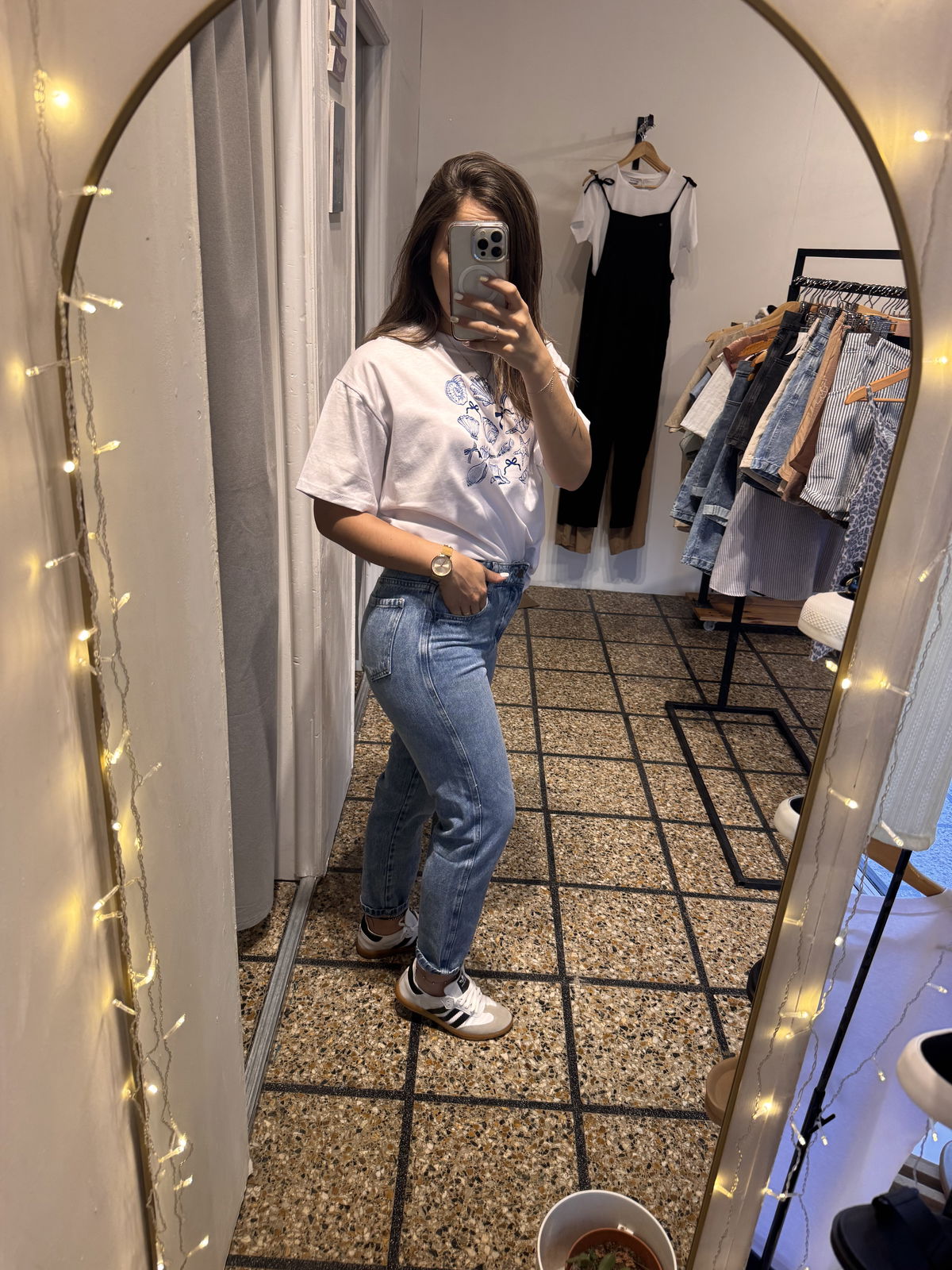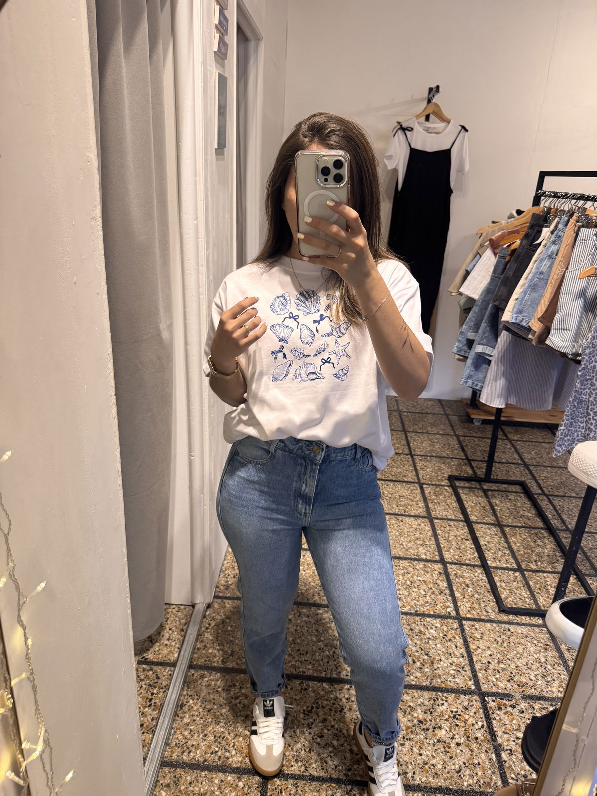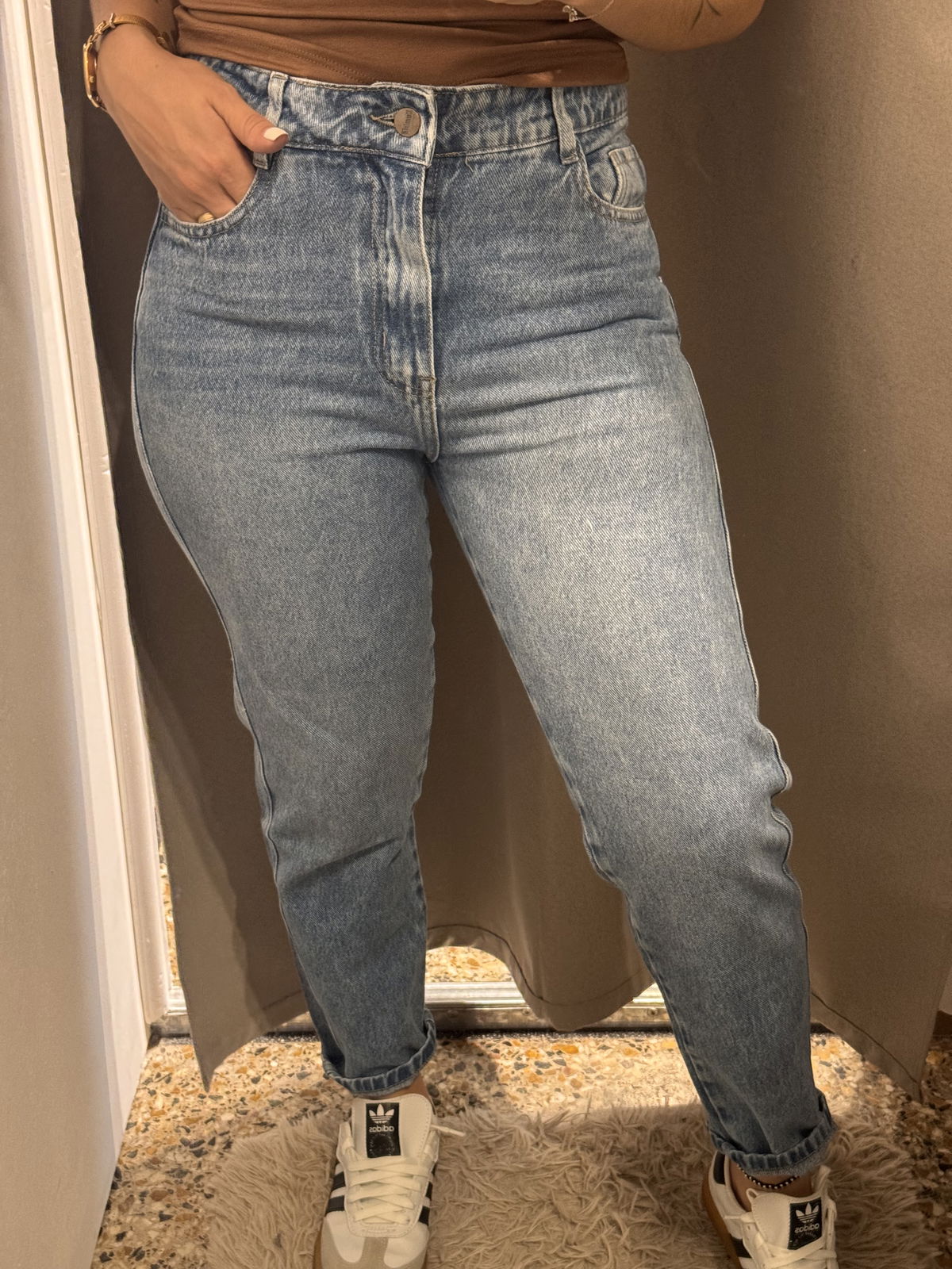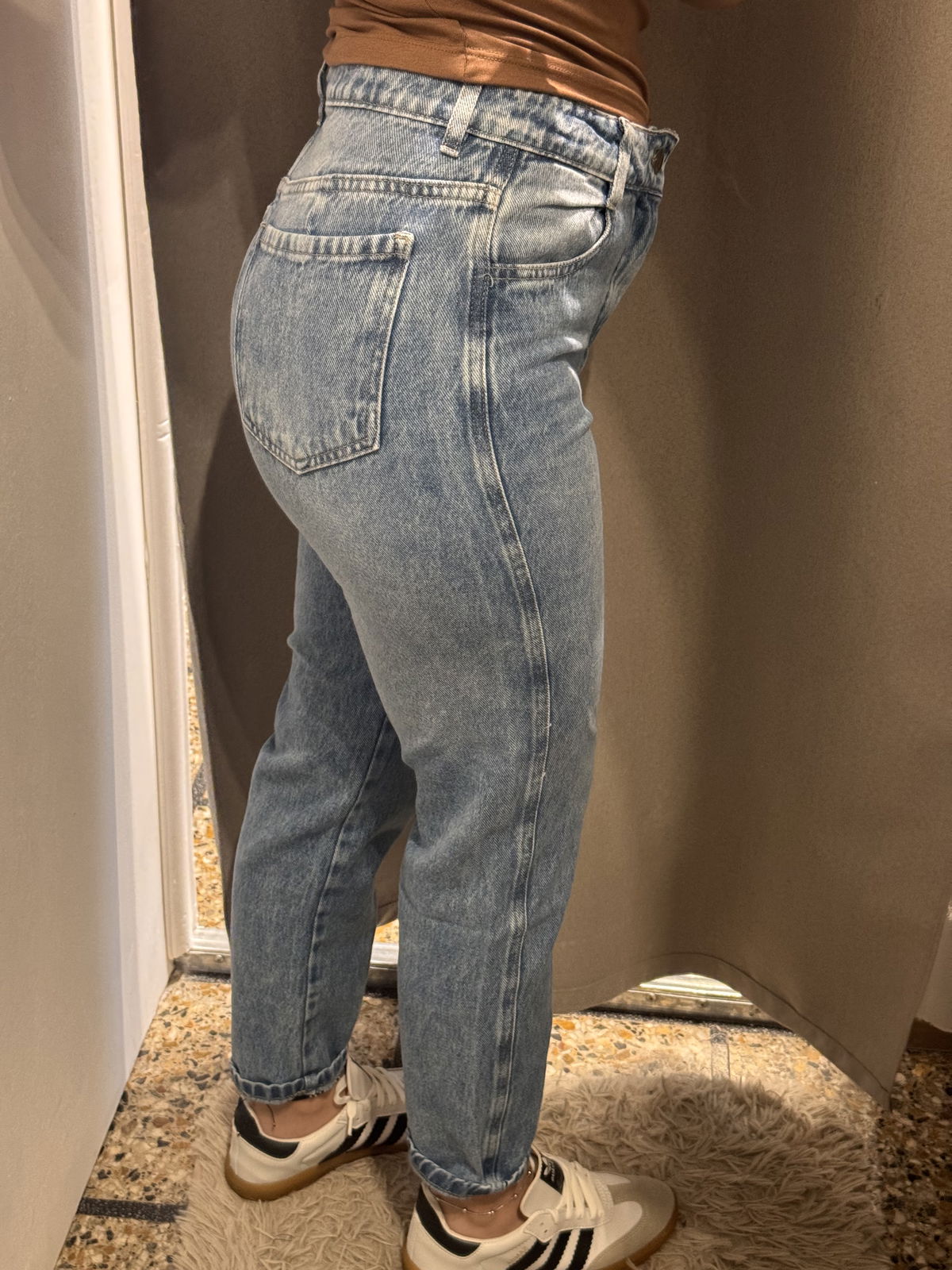Jeans Mom rígido tiro alto con bolsillos y pasacinto