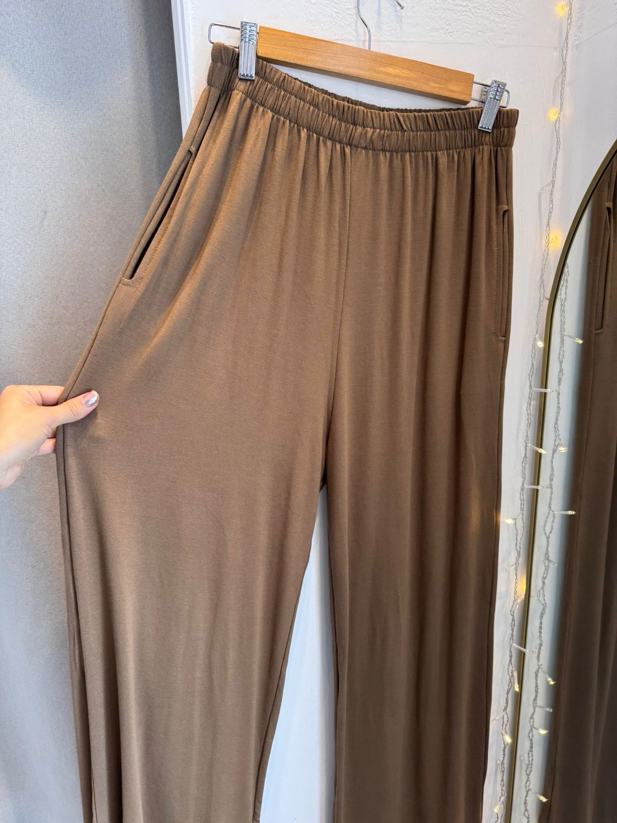 Plazzo de modal rústico, con bolsillos y cordón en la parte superior, que le da un toque delicado (el color camel viene sin cordón) y con elástico